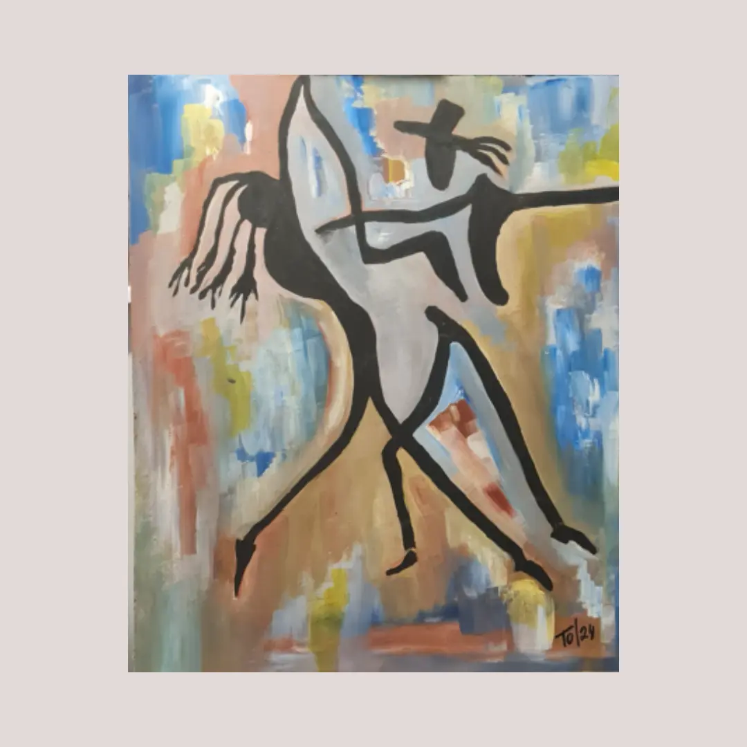 “Dos figuras se encuentran en un instante suspendido entre el ritmo y la emoción”