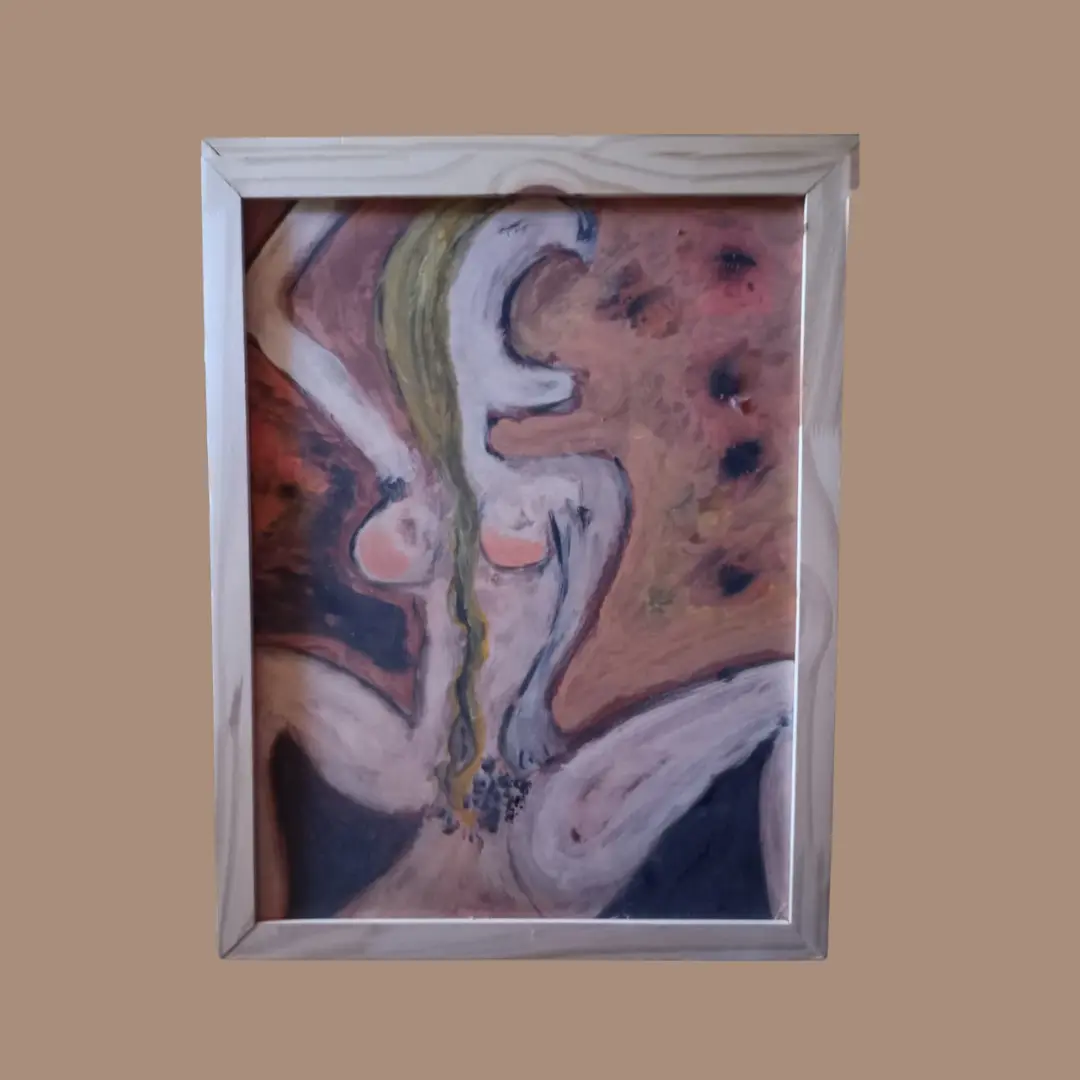 Este acrílico sobre madera es un homenaje crudo y necesario a la mujer en su expresión más pura y desinhibida. El trazo libre de Tabaré Oddone Esquivel desmantela siglos de juicios, invitándote a presenciar la belleza de la liberación total del cuerpo y el espíritu. Es un arte que te dice: “Aquí no hay culpa, solo hay celebración.”